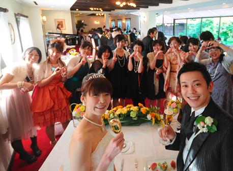 シェ・コーベのウエディングの良さは新郎新婦とゲストの距離が近いアットホームなところ。 |